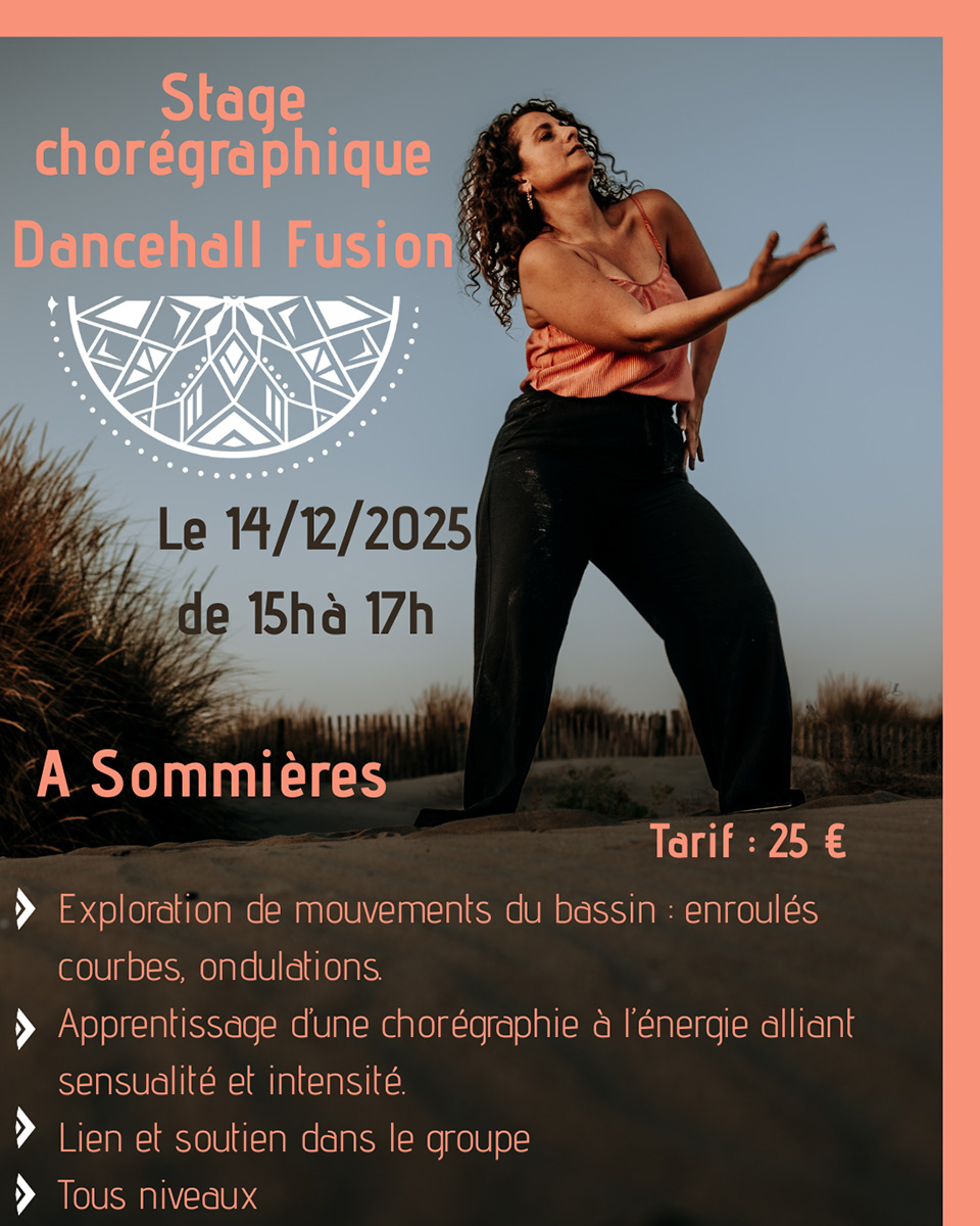 La Dancehall est une danse originaire de l’île de la Jamaïque. C’est une danse urbaine, festive, dotée d’une énergie particulièrement entrainante. Mais elle peut aussi véhiculer douceur et sensualité.